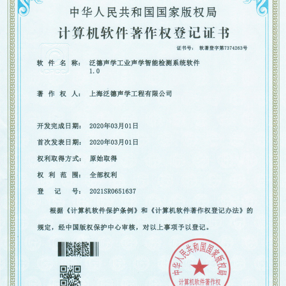 工业声学智能检测系统软件正式注册登记,获得了第一个软件著作权