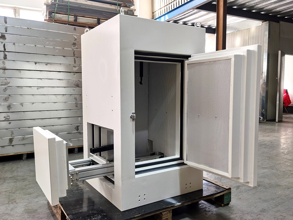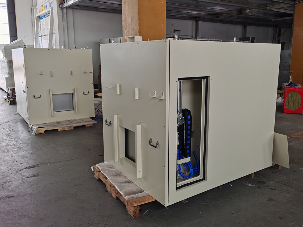 根据不同的测试工况和环境,隔声箱可设计大小不同的内空尺寸和不同的隔声量,来满足客户需求,同时设计有各种形式的手动平开门、气动推拉门、气动提升门等,使隔声箱可配合自动化生产线上的测试要求。