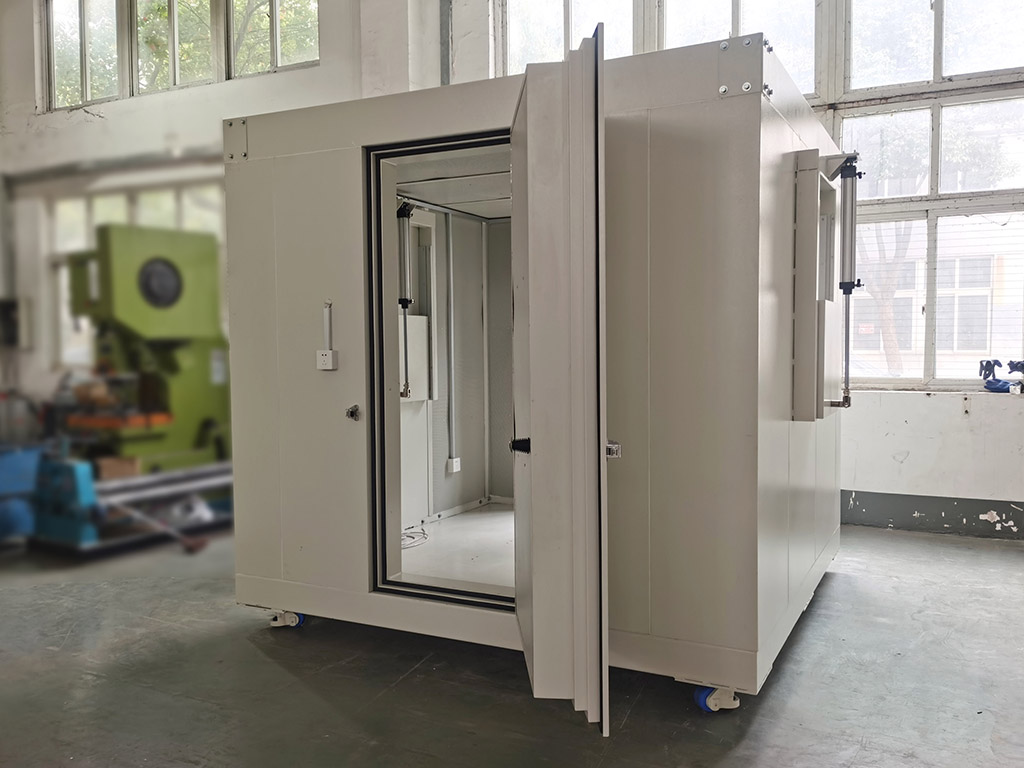 隔声房是不同多层复合吸、隔声材料组成的,可以隔绝外界噪声使房间内达到一定安静的测试环境,以完成不同产品的声学测试。